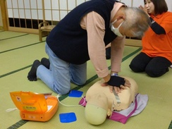 訪問先での万が一や、自身の回りで万が一の事態が起きた場合に、少しでも救命の助けになるよう人形を使った実践を交えながら2時間の講習を受けました。